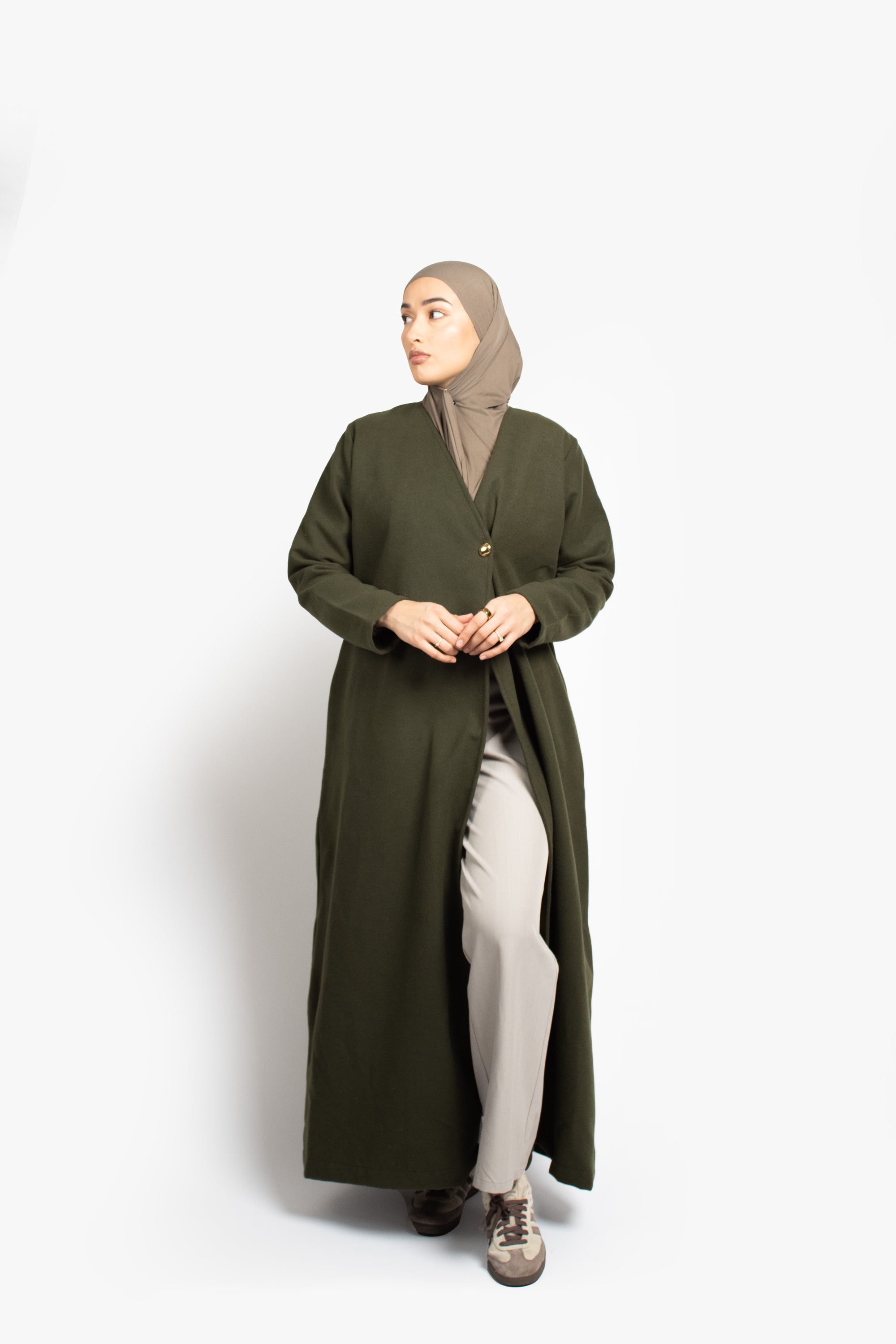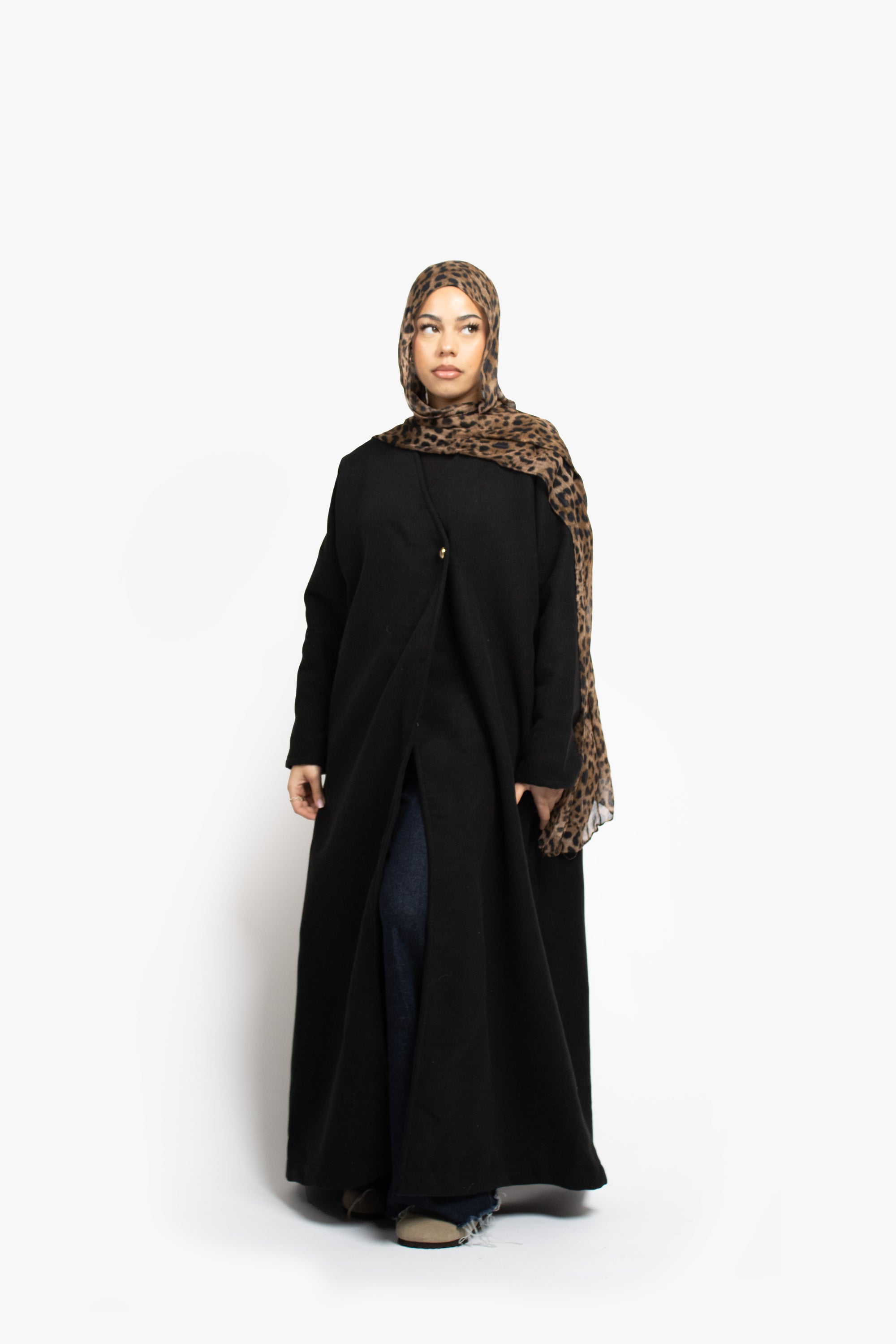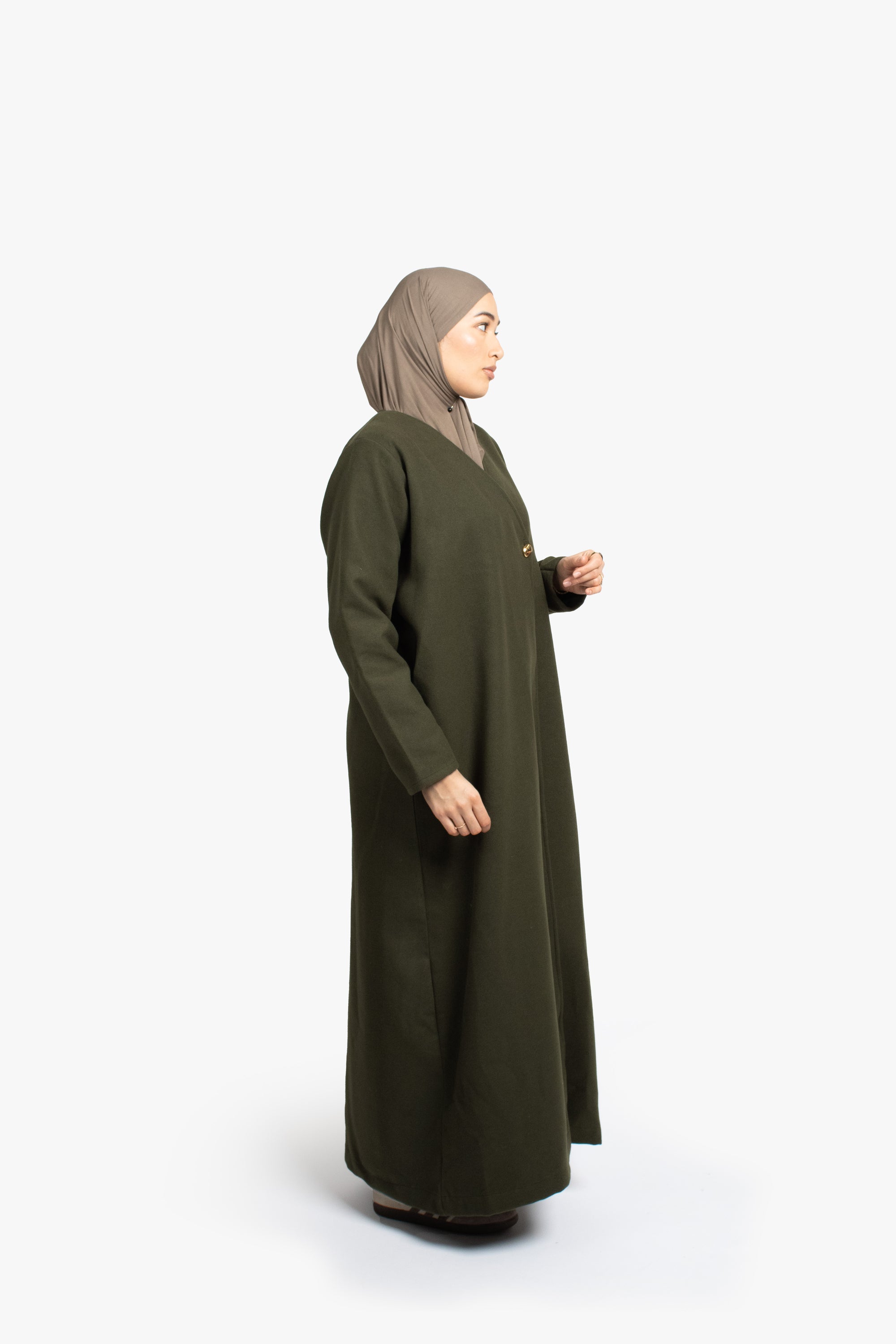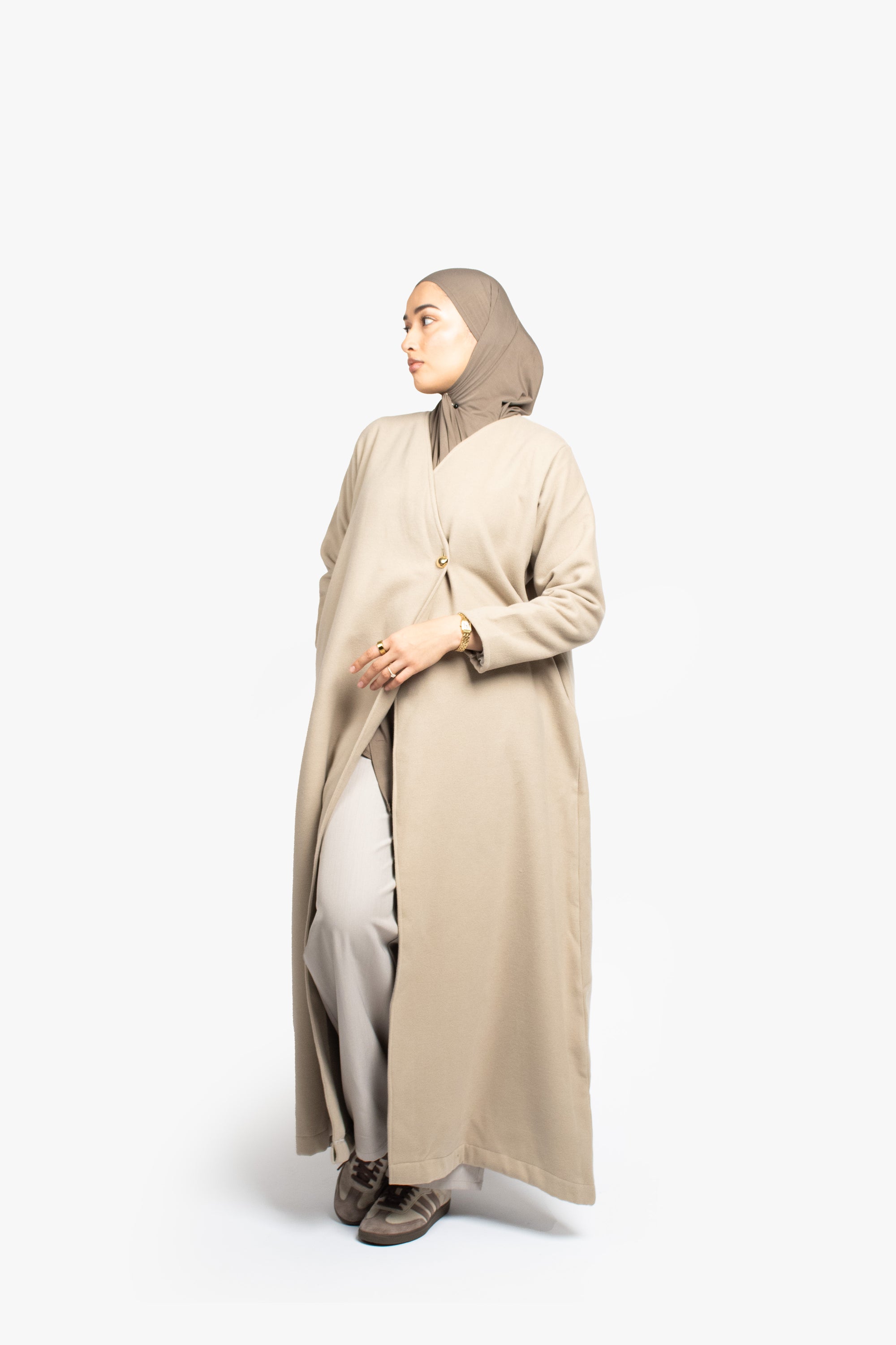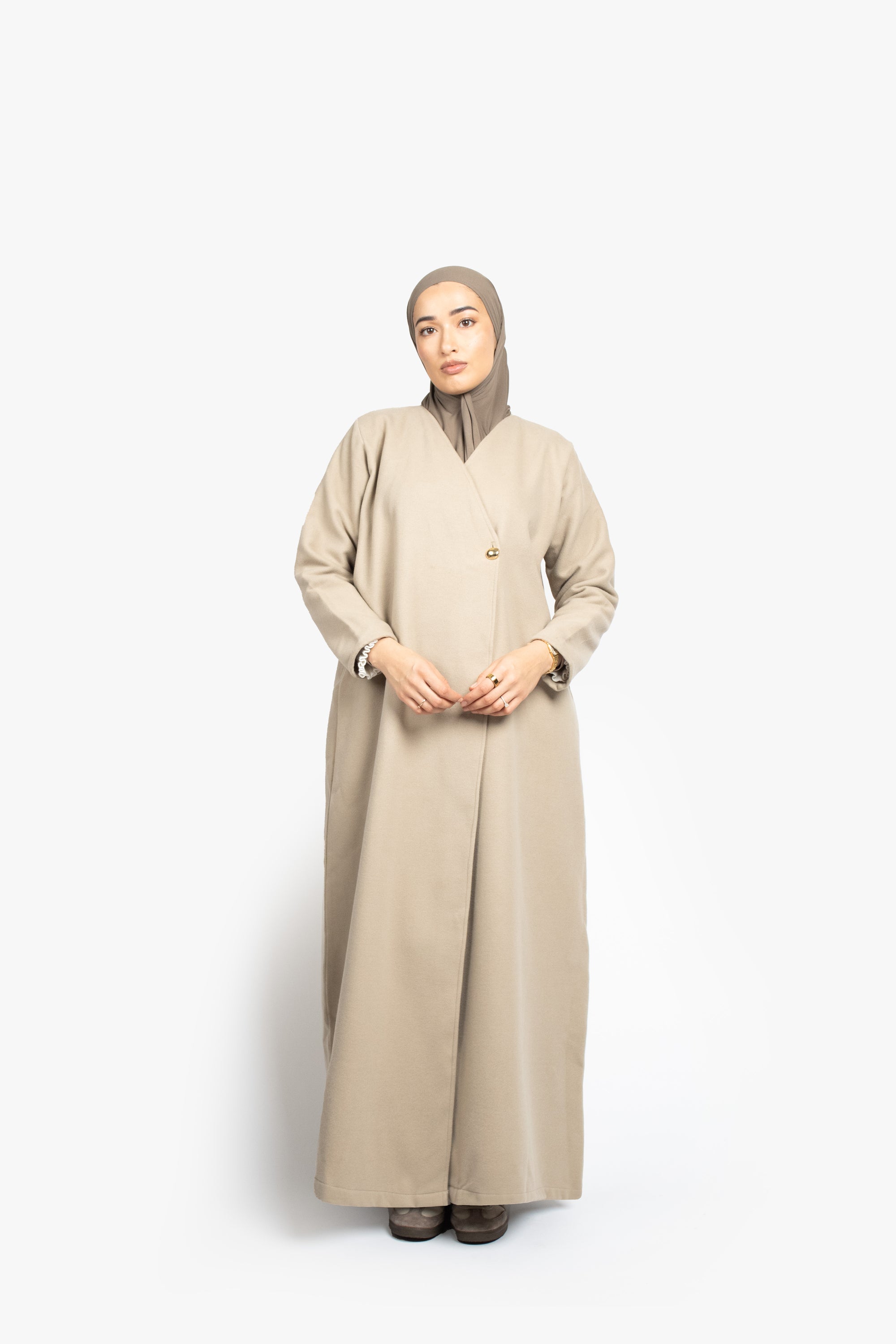 Khaki Brown Textured Umbrella Sleeve Abaya