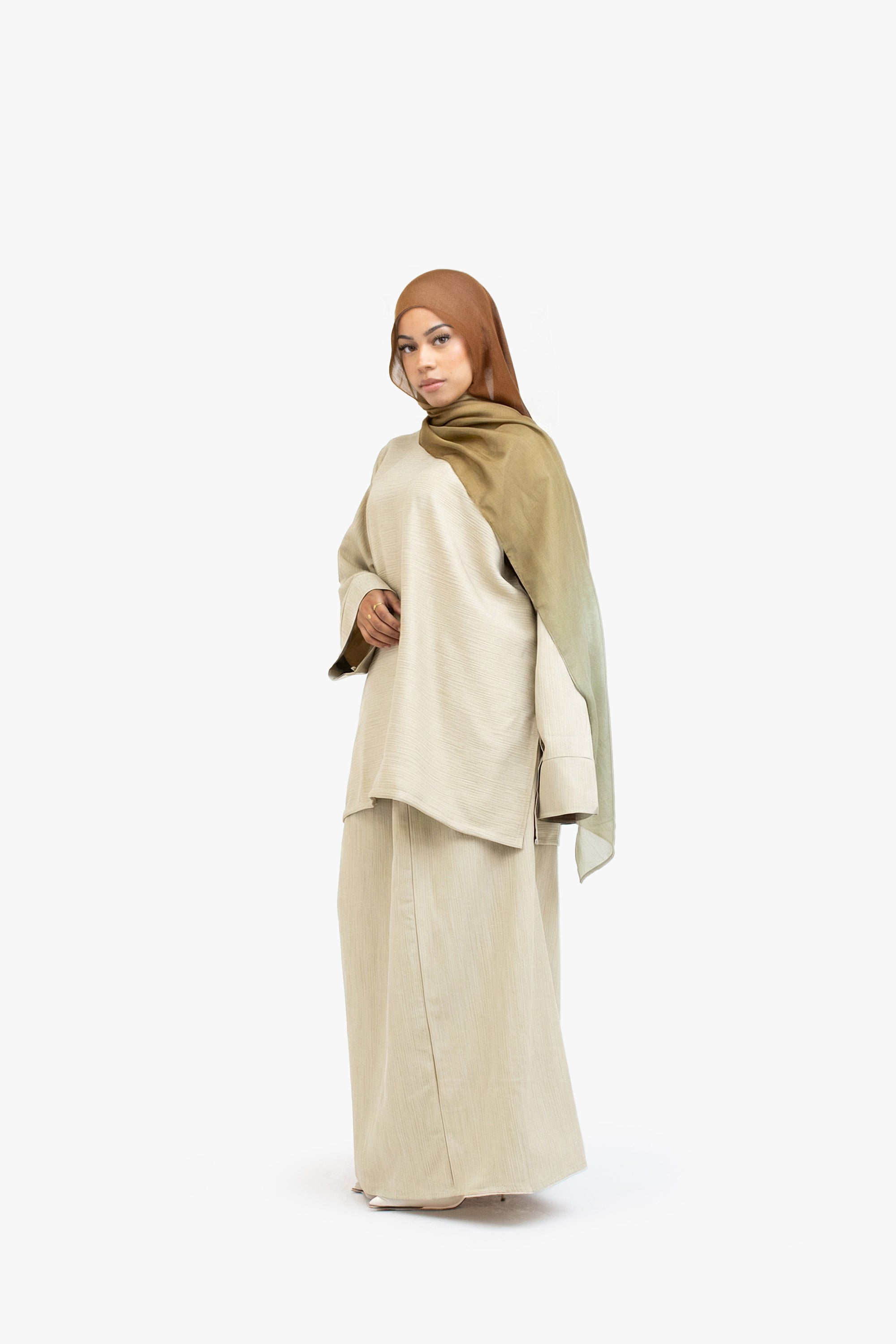 Khaki Textured Two-Piece Abaya