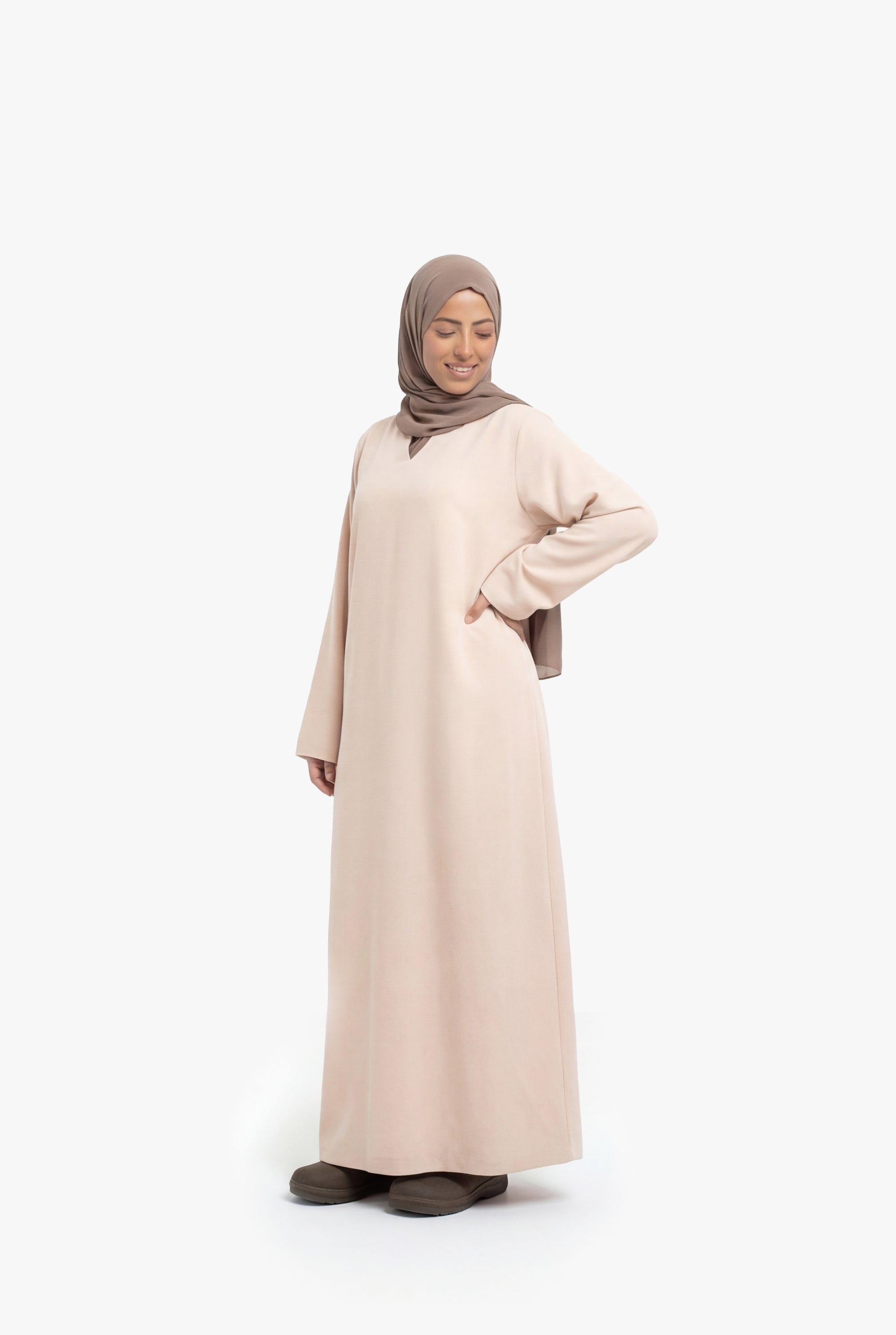 Nude V-Neck Abaya