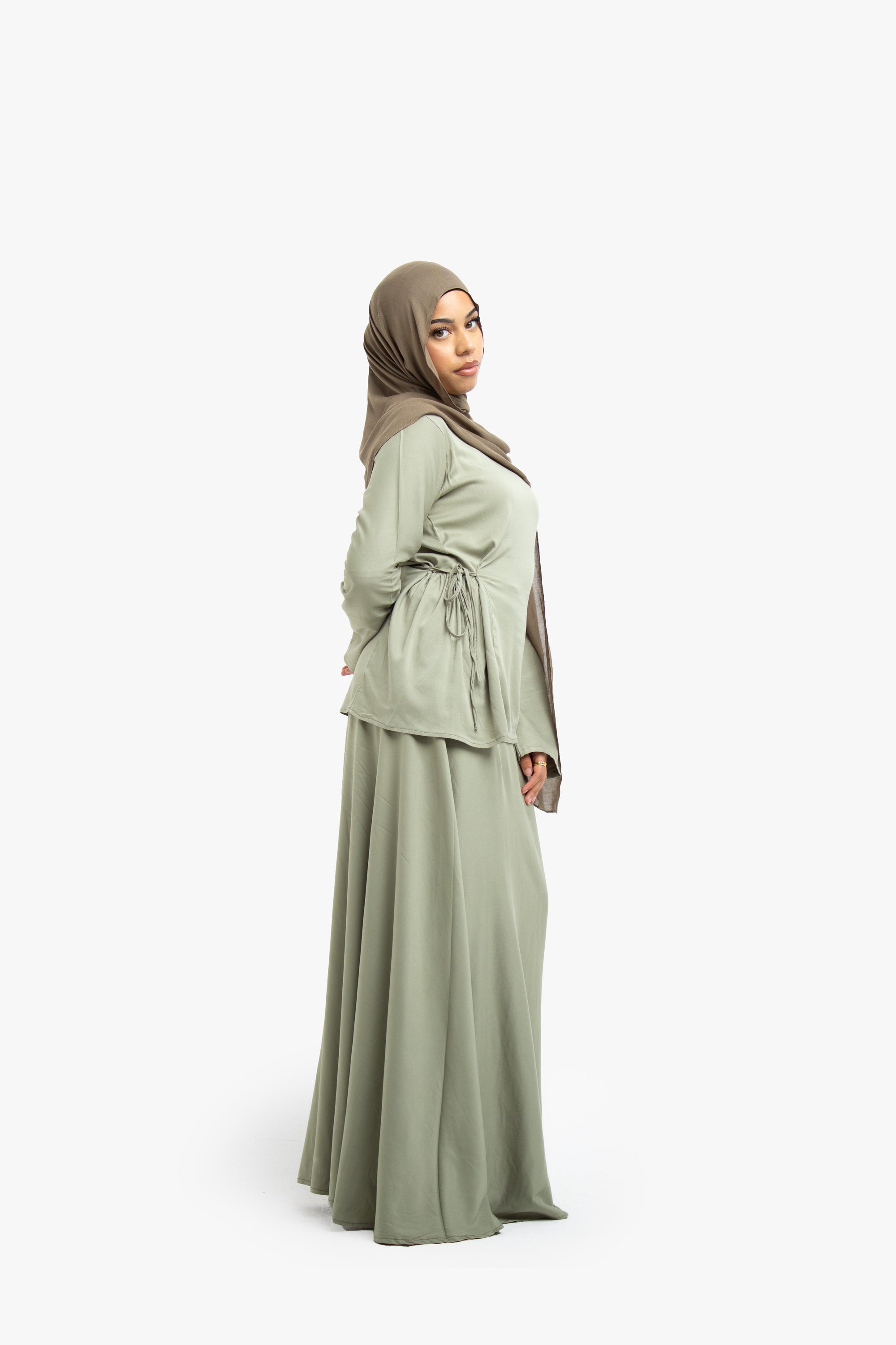Khaki Brown Textured Two-Piece Abaya